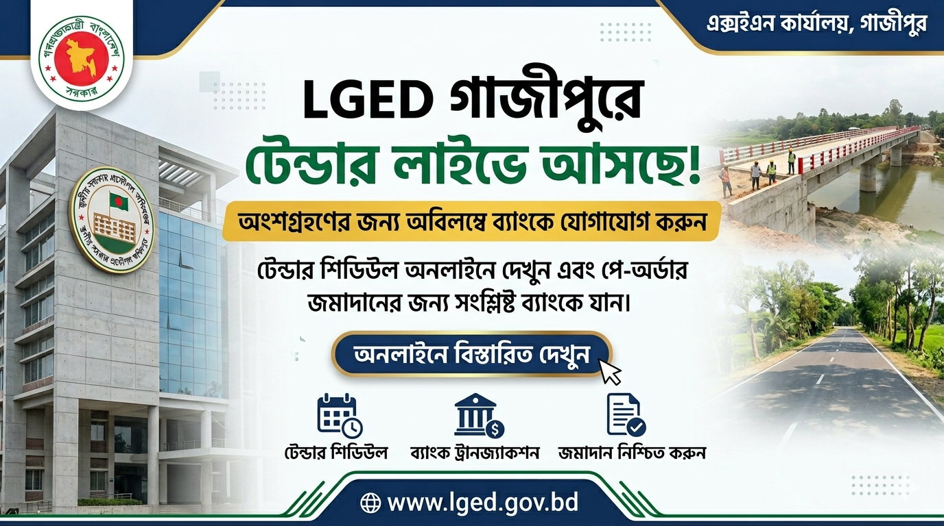 গাজীপুরে এলজিইডির ৭টি টেন্ডার আজ লাইভ: ঠিকাদারদের মধ্যে ব্যাপক আগ্রহ, ব্যাংকে যোগাযোগের আহ্বান গাজীপুরে অবকাঠামো উন্নয়নের ধারাকে আরও বেগবান করতে আজ নতুন করে ৭টি গুরুত্বপূর্ণ টেন্ডার উন্মুক্ত করেছে Local Government Engineering…